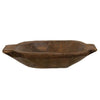 This Treenware Finger Bowl has an antiqued dark walnut finish with a rustic, handmade look. The shallow, flat bottom bowl makes a great candle plate too. 1-1/4 H x 5 in diameter. For Decor Use Only
