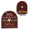 Give Grandma the perfect gift with our Heart Belongs to Grandma Tealight Holder! The holder has a rusty metal tealight holder behind a decorative wooden panel. The wood panel has a heart shaped cut-out that is surrounded with a painted vine accent, and the phrase "My ♥ Belongs To Grandma!" Holder measures 4" high by 3½" wide.Tealight sold separately.