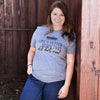 The Ohio Red/White/Blue T-Shirt is a soft everyday tee made of cotton-blend fabric in a neutral, marled gray color. The shirt reads “Ohio” in a retro script font, overlaying a dark blue state of Ohio graphic, complete with red detailing. This shirt is a fashionable addition to any wardrobe year-round, perfect for showing off state pride. Available in five unisex sizes, S-XXL. Size XL.