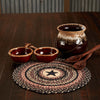 Protect your furniture in farmhouse style with our Beckham Jute Round Trivet. This 15 inch rustic table trivet is the perfect feature to stop heat from hot pots and pans from destroying a valued table or countertop. The homemade feel comes to life with the woven braided jute wool blend fabrics in brick red, dark tan, and country black and white displayed in concentric circles. These trivets are perfect for any time of the year and can also be used as the foundation for a down-home display in any room where you want that burlap farmhouse feel. It pairs perfectly with the Beckham Jute Placemats, Table Runners, and Chair Pads.