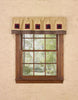 The Country Star Lined Patch Valance features a black & khaki tan mini check fabric with mustard-colored ditsy squares. Each square sports an appliqued barn red star. Charming valance for your country window!