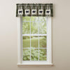 A rustic, warm and comforting plaid highlighted with pinecone patches is found in the South River Lined Patch Valance by Park Designs. The color combination of olde brick red, farmhouse tan, navy and sage make this valance a great choice for a country lodge design.