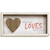 Chunky XOXO Heart Sitter is a wooden block with a bright red finish and heart shape. Sitter is freestanding and reads, XOXO in dimensional white lettering and it measures 4.25 high by 4.75 wide by 1 deep.