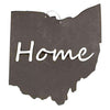 Metal Ohio with "Ohio" Cutout is a metal cutout sign of the state of Ohio with the word, "Ohio," cut into the design. Cutout has an industrial, rustic feel that is perfect for hanging in a garage or man cave. Hangs on a wire loop. Measures 16" high by 15" wide.