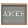 The Country Pride Print is a decorative lightweight wooden print held inside of a black wooden frame. The print shows a vintage tractor in a field, displaying an American flag and accessorized with chickens. Display this print propped on a shelf or hanging on a wall using the sawtooth hanger for an antiquated country accent in the home. Measures 8” high by 10” wide. Made in the USA!