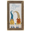 Friendly Beasts Print depicts a beautiful winter scene that would add charm to any room decor. The print features a farm house and barn with a large snowman in the foreground. The snowman is surrounded by woodland creatures, including a doe, rabbit, sheep, and cow. Print is made in the USA and includes a lightly distressed wooden frame and measures 12" high by 16" wide. With frame, item measures 14" high by 18" wide.