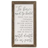 The original "I Do" print was so popular, that we decided to make it available in a smaller size! A beautiful verse on the devotion of married couples, featuring art created by Bonnie Mohr. Artist's print has a textured, easy-clean finish, and is set in a distressed black wood frame. 14" tall and 10-1/2" wide.