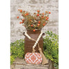 Paw Print Tan & Burnt Orange Keychain sells as an assortment of two fabric keychains with paw print designs. Keychain is tan with orange accents or orange with tan accents and it has a metal ring and chain. Measures 3 high (1.25 chain) by 3.5 wide.