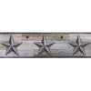 Hanging Star wall border is an assortment of burgundy barn stars and berry vines, "hanging" from an ivory peg strip, all on a tea-stain colored background. Wall border is prepasted, scrubbable and strippable. 5 yards long and 7-1/4" wide.