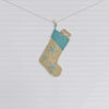 A fun and beachy way to dress the mantle for Christmas morning. The Nerine Stocking 11x20 is a textured natural cotton jute with appliqued starfish in ocean blue striped seersucker embroidered with a natural shade braided rope and the base is adorned in peal and star studs.