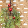 Bells Will Be Ringing Cedar Branch is a decorative floral branch with a sturdy brown twig-like stem. It is filled with textured cedar greenery and features clusters of antiqued red jingle bells. This floral is a festive and rustic addition to the home during Winter and Christmas, placed inside of a vase, pitcher, or can. Measures 24” long.