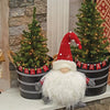 The Electric Candle Lamp is a decorative candlestick lamp made of durable black plastic with a wax-drip texture. The candle has a simple black base and fluted gray candle pan and includes a 7-watt bulb for a warm, cozy glow. The candle lamp is powered using a 5-foot white cord, and the candle functions using a rolling on/off switch. This candle brings a soft ambience to the home year-round, accenting a table, shelf, or counter, displayed alone or paired with a candle ring, mat, or other tabletop décor. Measures 7” high.