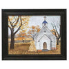 Harvest Time House Framed Print is a beautiful print that is perfect for the fall season. Print features a country house beside a large cornfield. An old tree with orange leaves, a haystack, and pumpkins make up the foreground of the image. Print is made in the USA and includes a lightly distressed, black wooden frame. Measures 19½" wide by 15¾" high with frame (12" high by 16" wide without frame).