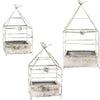 Twin Silo Birdhouse is constructed of galvanized metal and features two connected silos on a flat base. Each silo boasts cut-out holes on the front and functional hatches on the back. This birdhouse is freestanding and perfect for setting on top of a decorative pie safe, bookshelf, or mantelpiece. Measures 14" wide by 13" high.