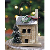 The Mossy Bottle Brush Pine is a decorative tabletop tree that rests on a natural wood base. This miniature pine has been lightly dusted with silver glitter for a frosted look perfect for a cozy Christmas display. Pair it with holiday-themed resin figures, signs, and sitters. Due to its size this tree is excellent for small spaces. Measures 14 high by 4 wide.