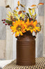 Metal Pulley with 2 Buckets is a set of 2 distressed metal buckets on a wooden pulley device. Buckets and pulley system are connected with a burlap rope that moves up and down to be fully functional. Piece measures 56" long and buckets measure 7" diameter by 7" high. Florals not included.