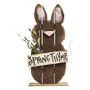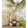 Natural Otis Bunny is a freestanding  bunny doll with a fuzzy cream finish. Bunny has a sand-weighted bottom for freestanding display and he has floppy ears, black bead eyes, whiskers, arms, legs, a brown fabric carrot, and a jute bow for primitive detailing. Measures 14" high  by 8" wide.
