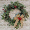 • Plastic cedar sprigs, red berries, red bells, and jute on a brown paper-wrapped wire stem