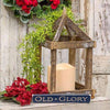 Serendipity Lanterns are a set of two freestanding lanterns that can be nested together for easy storing. Lanterns have a galvanized metal frame with wooden roofs and feature functional latches and metal finials with metal hanging loops. Lanterns have a weathered finish and look great with pillar candles and floral candle rings. Measures 8" squared by 16" high and 10.25" squared by 21" high.
