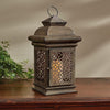 Large Shabby Chic Can Lantern is a metal lantern with a punched design. Lantern has a distressed white finish that complements a variety of spaces and it has a metal handle for hanging display. It is perfect for LED tealights and tapers and measures 5" high by 3" in diameter.