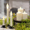 Enjoy warm, flickering candlelight, without the flames! LED pillar with a antique ivory real wax candle sleeve and grungy cinnamon coating. Switch on bottom turns candle on, off, or sets the internal timer on for 6 hours, off for 18. Candle will switch back on at time it is set! Average life is 40-48 hours on 3 AAA batteries (not included). 4-1/2 tall and 3 wide.