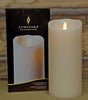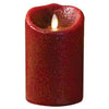 Burgundy Cake Pillar is a flameless candle with textured wax and a realistic, moving flicker flame. It has a built-in timer function that keeps the candle on for 5 hours, then off for 19 hours, repeating the cycle each day. Requires 2 AA batteries (not included). Measures 4" high by 3¼" wide.