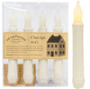 Halloween Timer Taper is a battery-operated taper candle with a grungy wax coating that features one of three Halloween design. Each taper features a jack-o'-lantern face, a trio of spiders, or a scared black cat. Taper is dipped in brown wax with a darker, almost black, drip-like effect just below the warm, flickering taper bulb. Taper includes a built-in timer features that keeps the candle lit for 6 hours, then off for 18 hours, repeating the cycle automatically each day. The cycle begins automatically once 2 AA batteries are inserted into the taper (not included). Measures 6.5" high.