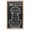 Live Love Bark Hanging Metal Sign is a black metal wall hanging that reads, "live, love, bark" in cut-out lettering. Sign comes ready to hang by a metal chain and it is accented by a bone, heart, and paw print that takes the place of the letters I, O, and A. Measures 12" high by 10" wide