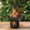 Aged Cowbell Ornament is a rusty metal bell with a square shape and a distressed, white painted finish. Includes a leather hanging strap that ends in a silver metal loop. Measures 6" high by 4" wide with a 6" strap.