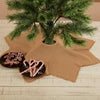 This tree skirt is made of burlap and reads: Merry Christmas to all, and to all a good night. It has ruffled plaid trim, and measures 48" in diameter. Formerly item # G02453.