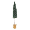 The Flocked Bottle Brush Tree is a decorative tabletop tree figurine made of stiff ivory bottle-brush material. The tree has white flocking for texture and dimension and sits atop a round wooden trunk. Display this tree on a riser, tray, table, or shelf during the Winter and Christmas season for a simple and charming holiday touch to the home. Measures 12” high and 2.5” in diameter.