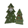 Med Plush Plaid Tree sells as an assortment of three plush trees. Tree has a weighted base for freestanding display and it is wrapped with white knit for detail. Tree has a green, white, or red plaid finish with a matching bow on the base and it has a wooden dowel for a trunk. Tree looks great on counters and tabletops and it measures 13.5 high by 6.5 wide by 3 deep.