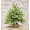 Park Pine Little Giant Tree, 26” is an artificial pine tree whose stature makes it a versatile wintery accent. The needles of the green foliage give this tree a natural, full shape, and it sits in an understated burlap base that has been tied around the trunk with a jute string. This primitive decoration measures 26” tall.