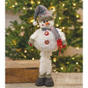 Snowman Tree Topper features a 16" long wooden stick for easy placement atop a tree. The head is 5" tall and has a long red stocking cap with rusty jingle bell accent. The topper also comes with two 11½" natural fabric arms to place in the tree.