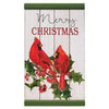 Snowy Shooting Star Mini Tree Ornament features foam pine needles and pine cones on a brown-wrapped trunk. It has been heavily flocked for a wintry appearance and hangs by its curved green stem with a weighted red star tree topper. It can be hung from a tree or a nail in the wall for a charming display. Measures 9" high by 2" wide.