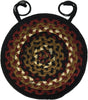 Our Cider Mill Jute Chair Pad offers a casual aesthetic expression of burgundy, tan, black, and olive green in concentric braids of 100% jute that blends together for a classic country primitive look. Features two 11 inch ties to secure chair pad to the chair. Reverses to same as front.