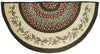 The Farmhouse Star Half Rug is a half-circle floor mat that fits neatly in front of any doorway for a rustic country look. It has 100% natural jute fibers in black and tan, tightly woven and stitched together in alternating bands, accented with screen printed stars. 33" long and 16" wide.