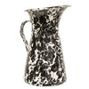Black Splatter Enamel Soup Mug is a white enamel mug with a black rim and black splatter pattern that adds flair to a dining room. Mug has a large, comfortable handle that can be hung on racks and it is food, oven, and dishwasher safe. Measures 4" high by 4.5" wide (5.5" with handle). Do not microwave.