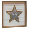 Flea Market Sign features a wooden frame with metal accents with a vintage, fabric flea market sign inside. It is 24" high by 16" wide with a 1½" depth.