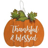 Leaves Are Falling Jar Sign is a painted metal sign with a Mason jar shape and lightly distressed edges. Sign features fall-themed imagery and displays the phrase, "Leaves are falling. Autumn is calling." Hangs on a jute cord. Measures 12" high by 7½" wide.