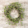 Snowy German Twig Teardrop with Cardinals features branches of frosted greenery that sparkle with silver glitter. Three foam cardinals with velvet bodies and fabric feathers sit throughout the branches. Measures 30" high by 12" wide.