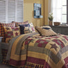 • Quilt: Features three borders in black, mustard, and crimson plaid fabrics, Shams: Feature 3 tie closures with 3" overlap to conceal pillow insert
