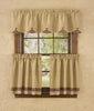 Country living meets style & warmth! This Thyme Layered Valance offers an intriguing design consisting of lovely greens, tans & barn red in two coordinating fabrics! The top layer of plaid is perfectly complemented by the green, red & sand striped pattern that peeks out along the bottom edge! So country charming on its own, or pair with coordinating tiers for a more striking appeal!
