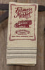 Rise and Shine Dish Towel is a tan, waffle weave towel with black and white striping details along the bottom. Towel features a rooster design and displays the words, "Rise & Shine." Measures 28" long by 20" wide and 100% cotton.