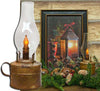 Add this Burnt Mustard Dripped Pillar Lantern to a reading room or on a fireplace mantel to give off a soft light. This lantern has a black plastic framework and lightly distressed edges that provide an aged appearance. Lantern is lit by a burnt mustard, battery-operated pillar candle that measures 4" high and runs on a built-in timer that stays lit for 6 hours, then off for 18 hours, repeating the cycle automatically each day. Item includes a carrying handle and requires 3 AAA batteries (not included). Measures 12" high by 5½" square