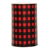 Star Timer Pillar features multiples black stars on a grungy burnt mustard pillar candle. It is 4" high by 3" wide, stays on for six hours before turning off for 18, and requires three AAA batteries (not included).