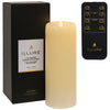 Illure Ivory Wax Pillar is a battery-operated pillar candle with a realistic, flicker flame and an ivory wax coating. The candle comes with a convenient remote with on/off, +/- dim, and multiple timer settings (4 hours, 6 hours, 8 hours, or 10 hours). Remote requires a CR2025 battery (not included). Candle requires 2 C batteries (not included). Indoor use only. Pair with our other sizes of Illure Ivory Wax Pillar to create a beautiful lighting arrangement. Measures 3" wide by 6" high.