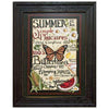 A great folk art print that's a wonderful Autumn accent for a wall or shelf. Quality artist's print of lots of Fall and Thanksgiving-themed motifs and phrases, like "Pumpkins and Spice", "Harvest Moon", "Apple Cider" and "Bittersweet Vines", all in different lettering. The print has a easy-clean textured acrylic coating, and is set in a handmade black wood frame with distressed edges. Measures 19-5/8" x 17-5/8" and is made in the USA!