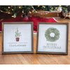 +Farmhouse Christmas Sign is a modernly rustic sign that features a distressed, watercolor-style image of a wreath and the phrase, "Farmhouse Christmas." Sign includes a galvanized metal frame that has an easel back for tabletop display, as well as two keyhole hangers for wall hanging. Measures 16" square by 1.25" deep.