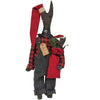 Henrietta and Hazel Doll is a primitive fabric doll. Henrietta the doll holds a miniature version of her own doll, Hazel. They each wear patterned fabric dresses and straw hats. They have brown yarn hair and rosy cheeks, and each is pinned with a paper name tag. Doll has a weighted bottom so she sits upright. Measures 15" high by 4" wide and 3" deep, or 10.5" high in a seated position.